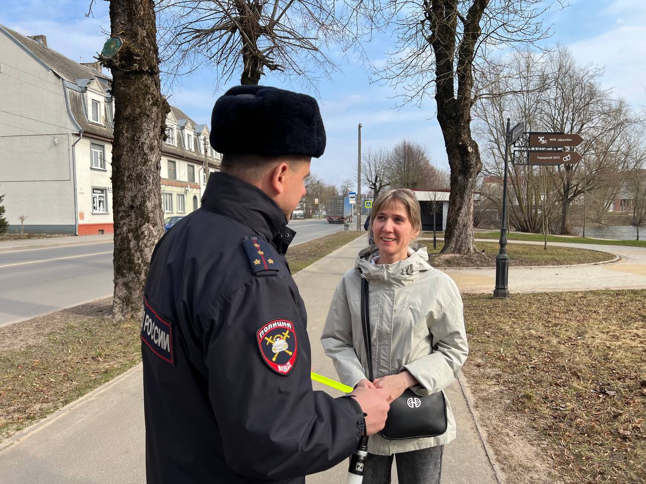 Для обеспечения безопасности в темное время суток инспекторы вручали пешеходам световозвращающие элементы, призывая быть заметнее на дороге.