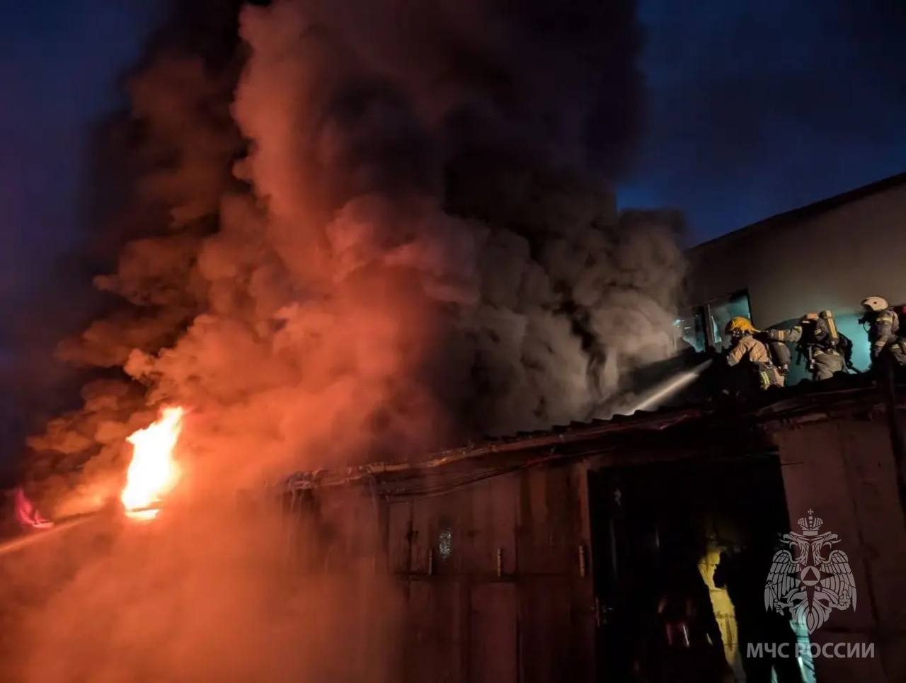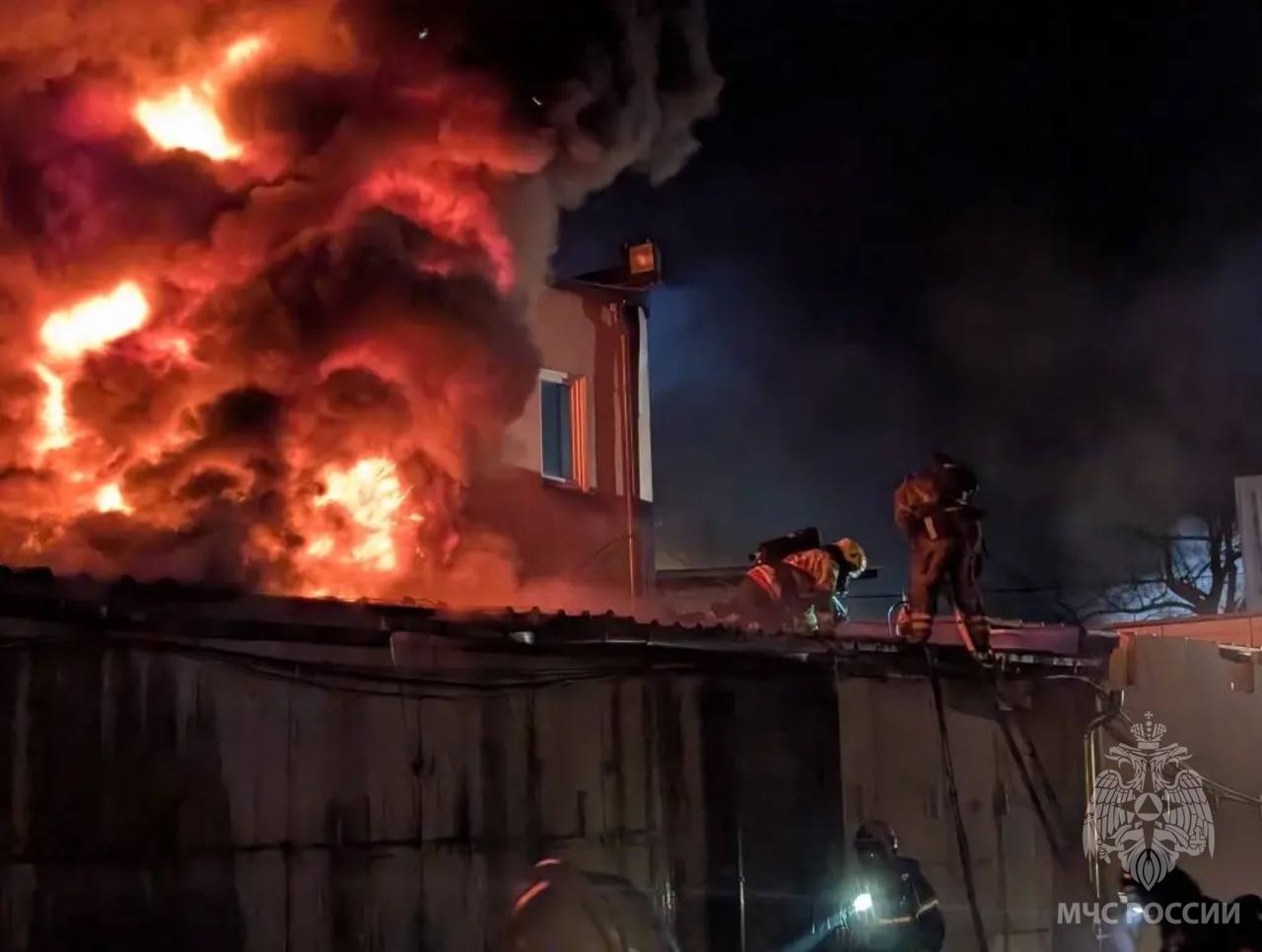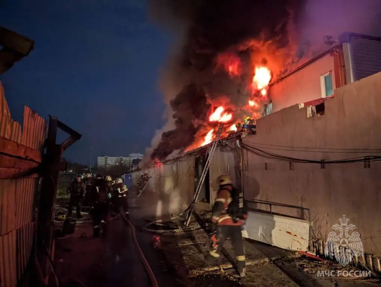 На месте работают 58 человек личного состава 13 спецавтомобилей МЧС России.