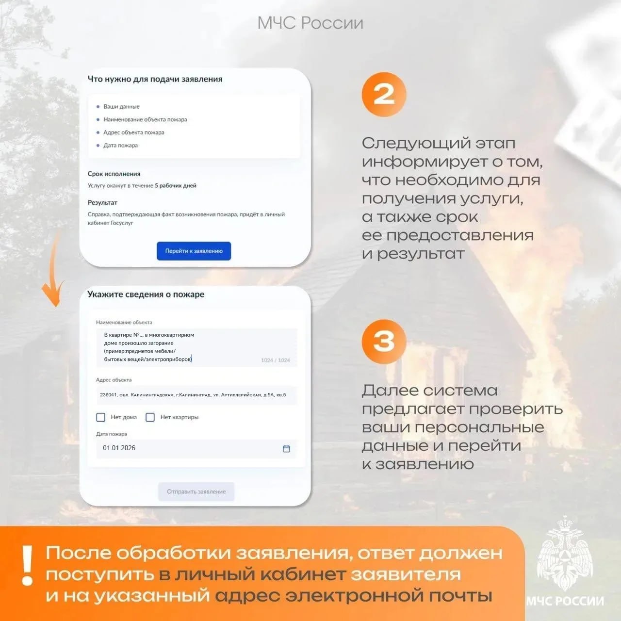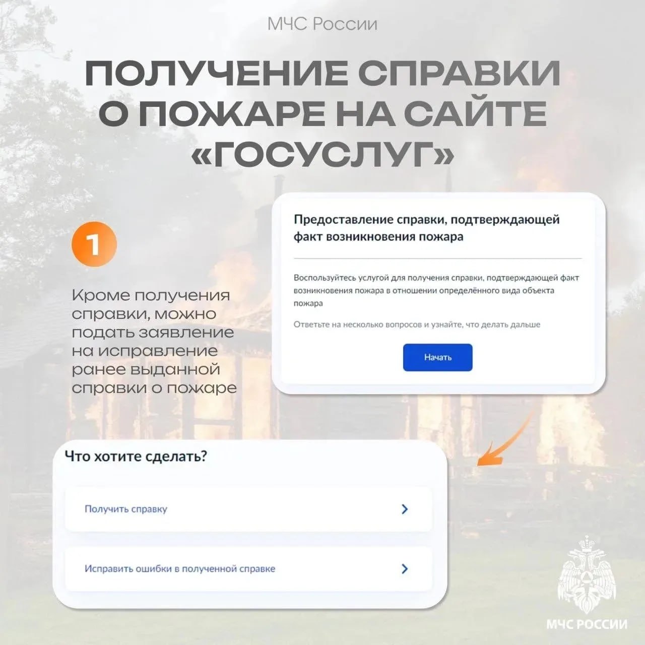 Вы можете оформить заявление на предоставление справки, подтверждающей факт возникновения пожара, на портале «Госуслуги». Для этого достаточно зайти в мобильное приложение или свой аккаунт на компьютере и набрать «справка по пожарам» в поисковой строке.