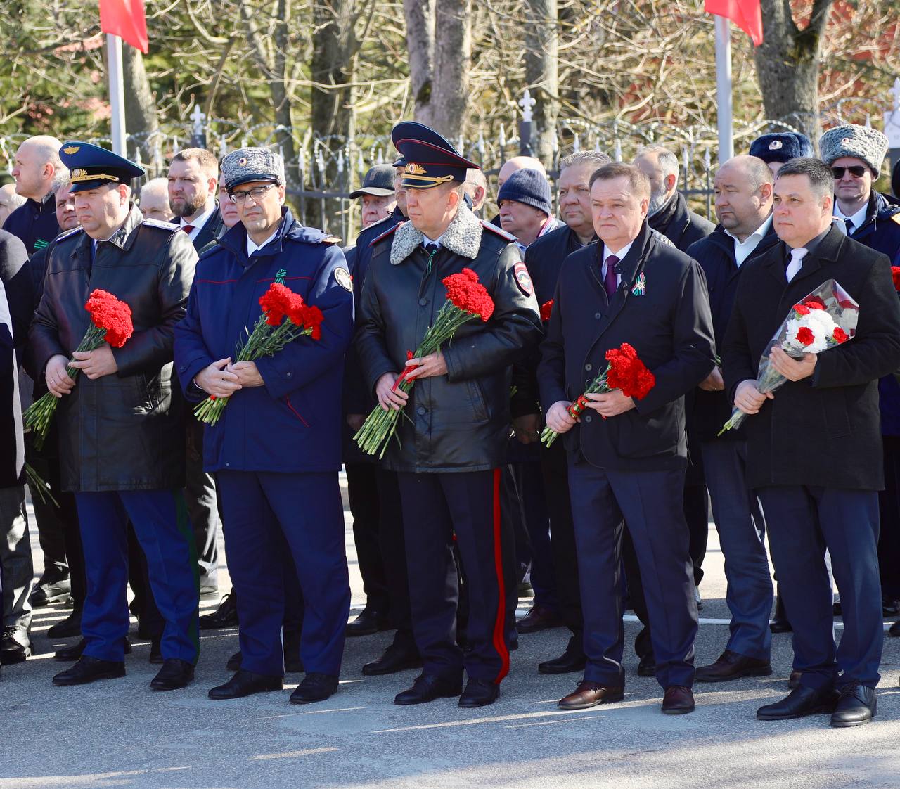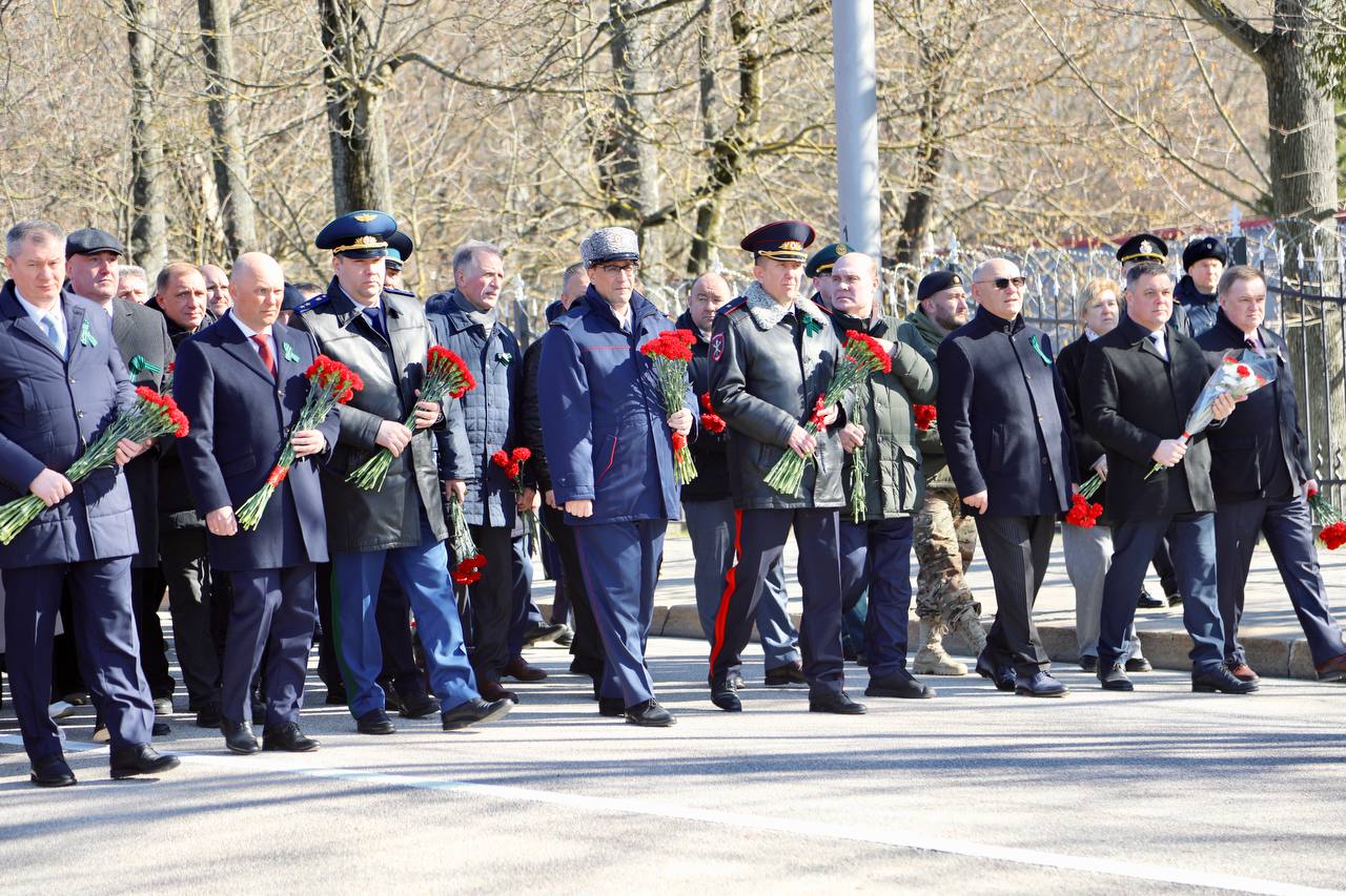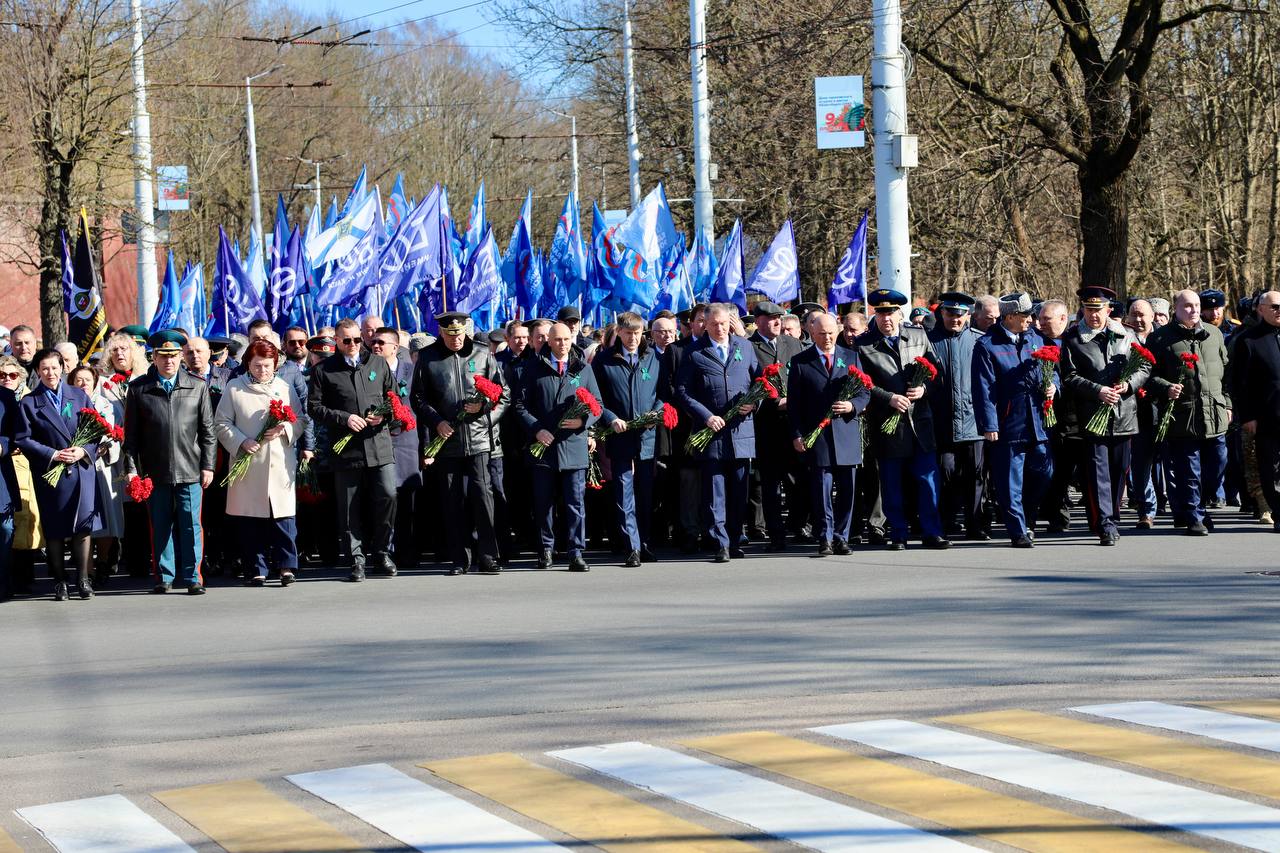 Вместе с губернатором Калининградской области Алексеем Беспрозванных, представителями силовых структур и органов государственной власти, военнослужащими, ветеранами, общественниками и молодежью цветы к памятнику возложил начальник УМВД России по Калининградской области Вадим Ятайкин. Участие в церемонии возложения принял председатель Общественного совета при региональном УМВД Вадим Филиппов.