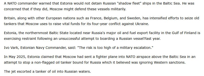 В мае 2025 года Эстония пыталась задержать танкер Jaguar c российским экипажем. Тогда в небе появился Су-35С и активность ВМФ Эстонии сразу прекратилась.