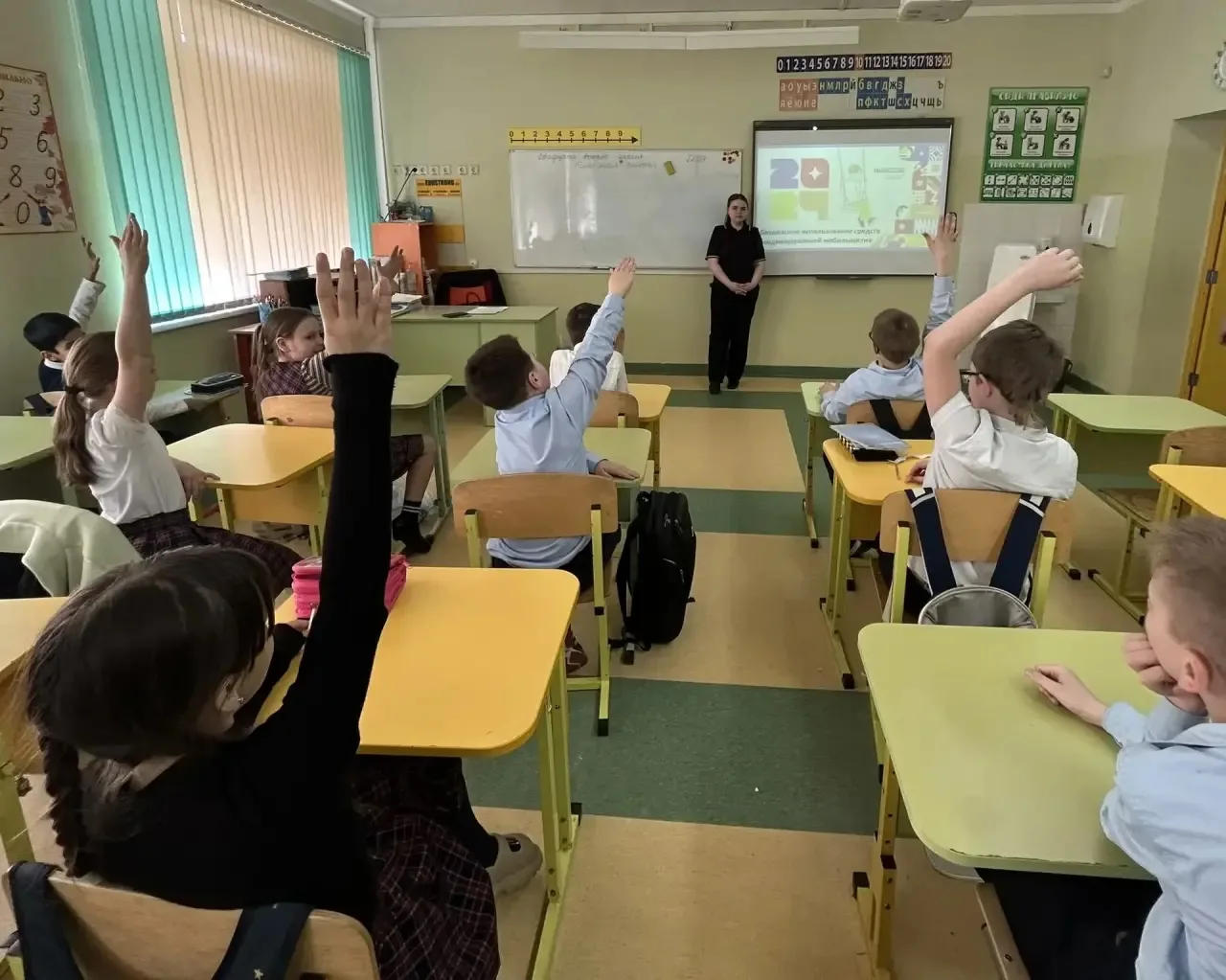 Инспектор повторила со школьниками основные правила, которые необходимо соблюдать, по дороге в школу.