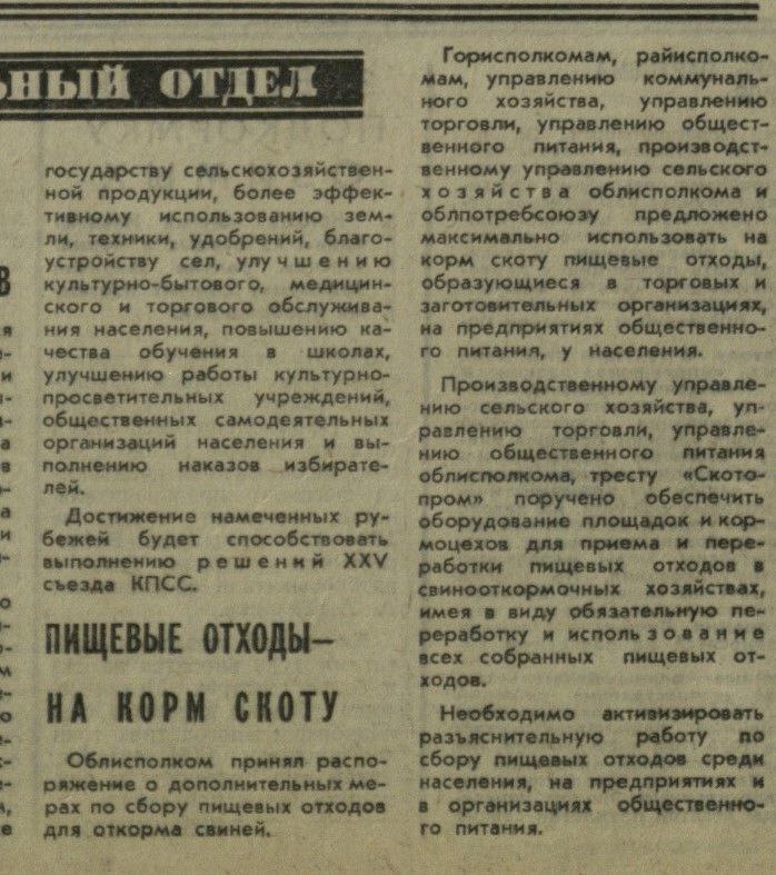 50 лет назад областные власти приняли решение о создании в городе специальных контейнерных площадок, на которые граждане выносили пищевые отходы, их потом направляли на корм скоту.