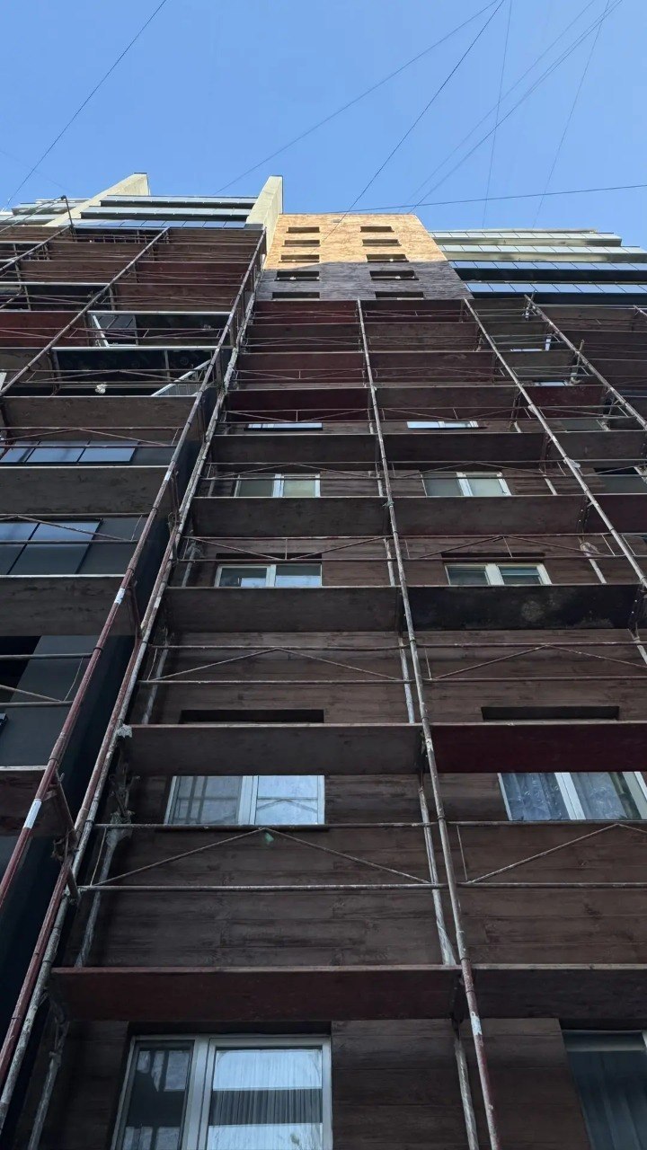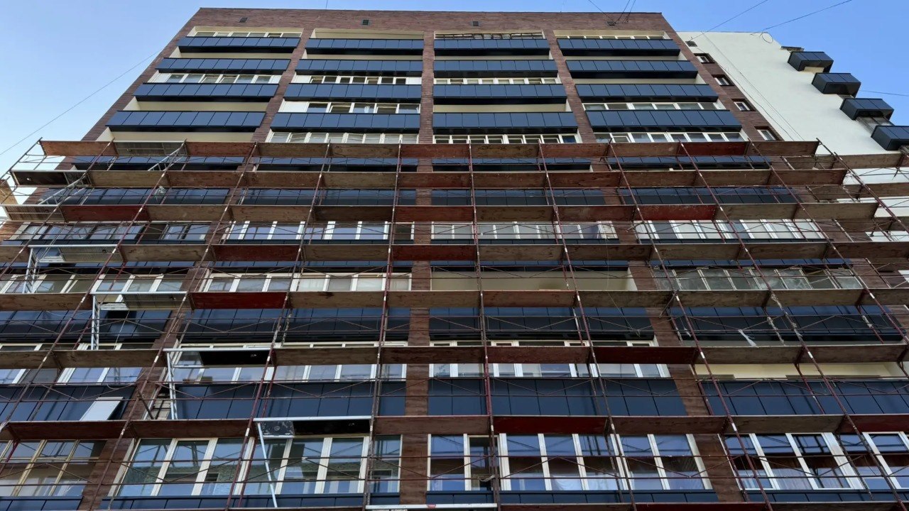 Речь о многоэтажках № 116 и 120, с которых сейчас снимают леса – работы завершены.