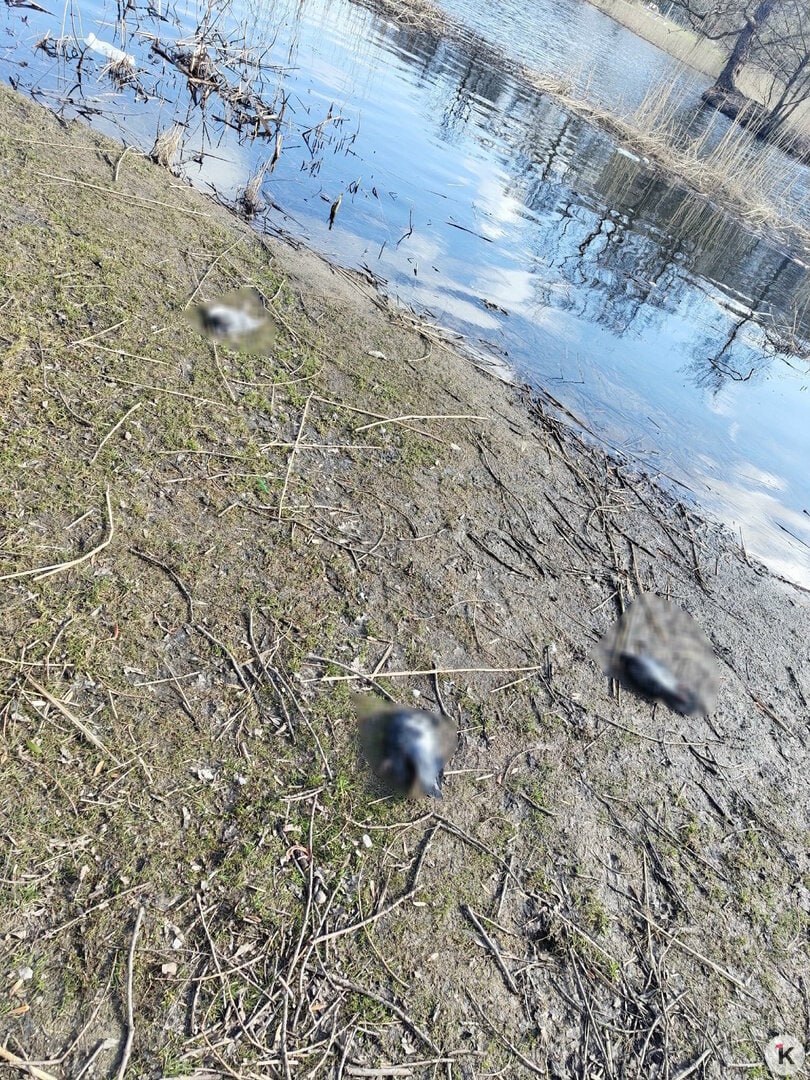 Калининградцы начали находить тушки погибших птиц на берегу водоёма в понедельник, 6 апреля. Особенно много их, как и во время осеннего такого же случая, неподалёку от улицы Автомобильной.