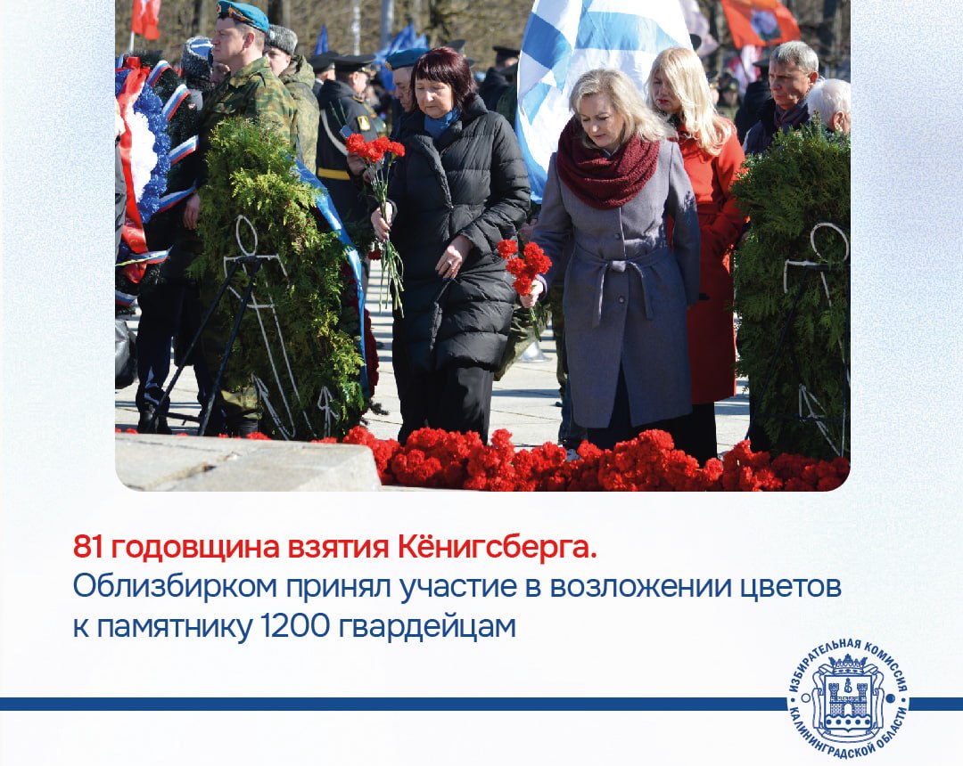 По традиции в церемонии, проводимой в день взятия Кенигсберга, приняли участие ветераны боевых действий, руководители города и области, Балтийского флота, представители всех ветвей власти, общественных движений и политических партий, жители региона.