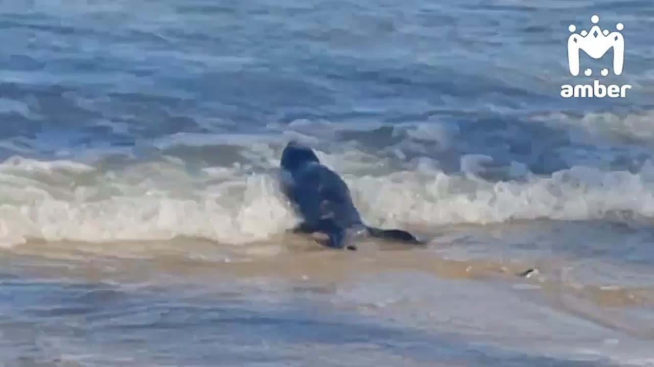 Детёныш серого тюленя материализовался на Куршской косе — причём аккурат перед человеком с камерой.