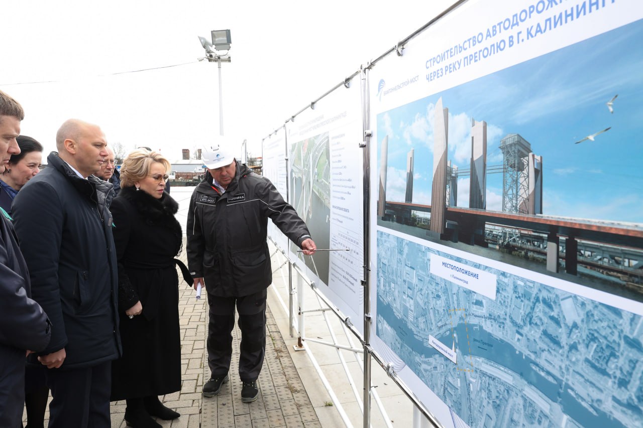 Председатель СФ ознакомилась с процессом строительства нового автодорожного моста в Калининграде через реку Преголю, при возведении которого были применены уникальные инженерные решения. Спикер верхней палаты подчеркнула высокую значимость проекта для развития региона, его экономического и туристического потенциала. Она указала на необходимость постоянного контроля за эффективностью выделяемых средств.