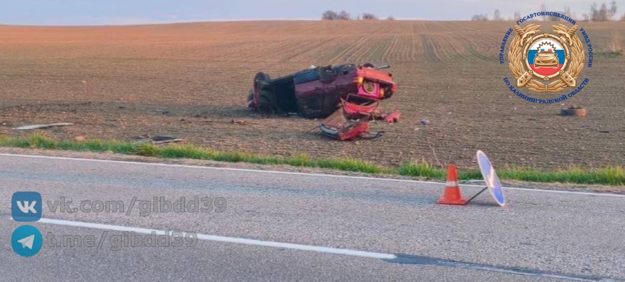 В Гвардейском районе легковой автомобиль выехал на встречную полосу, съехал в кювет и перевернулся в поле