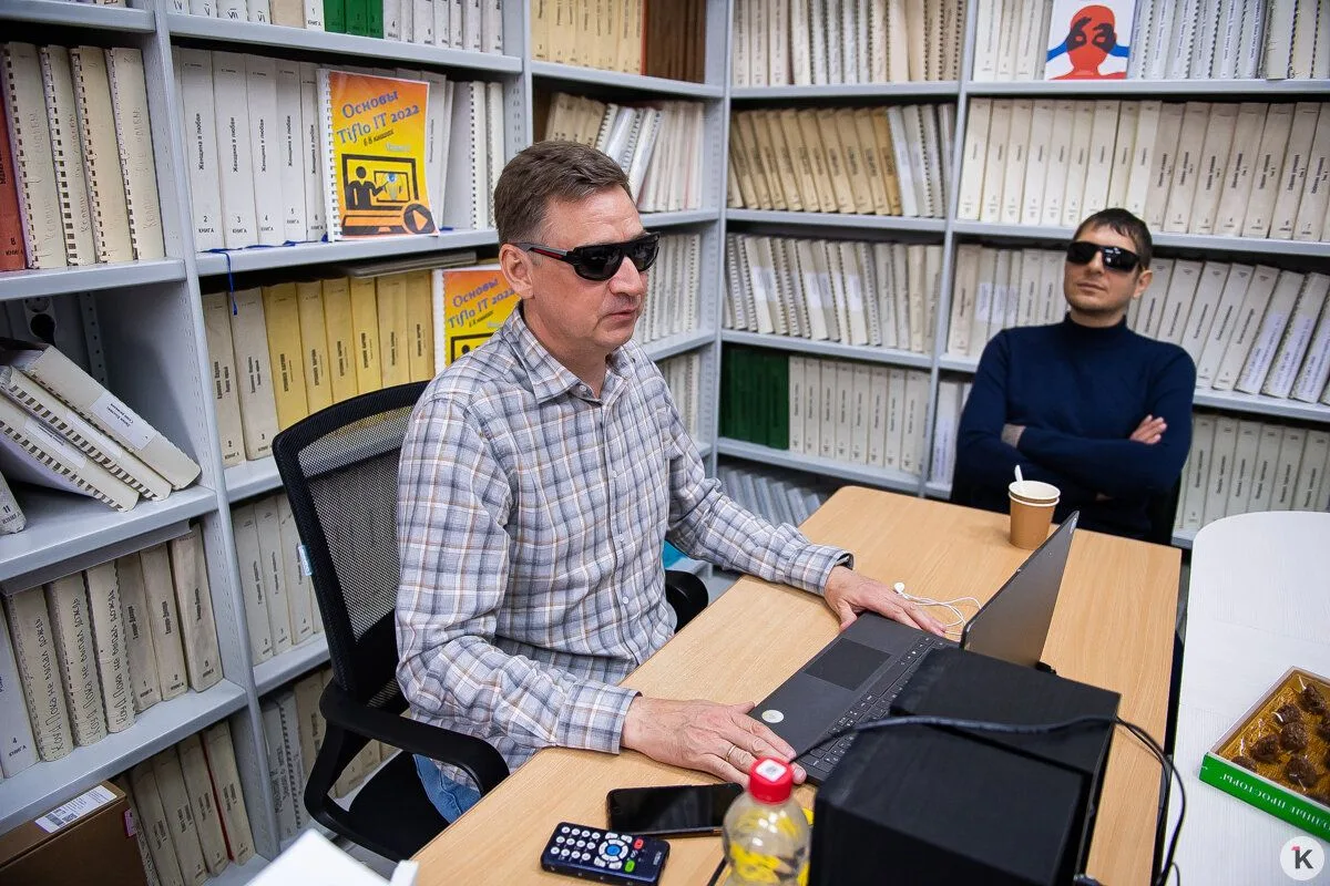«С вами разговаривает такой же слепой, который со всем этим работает», — говорит сотрудник библиотеки, обучая людей пользоваться компьютером и смартфоном.
