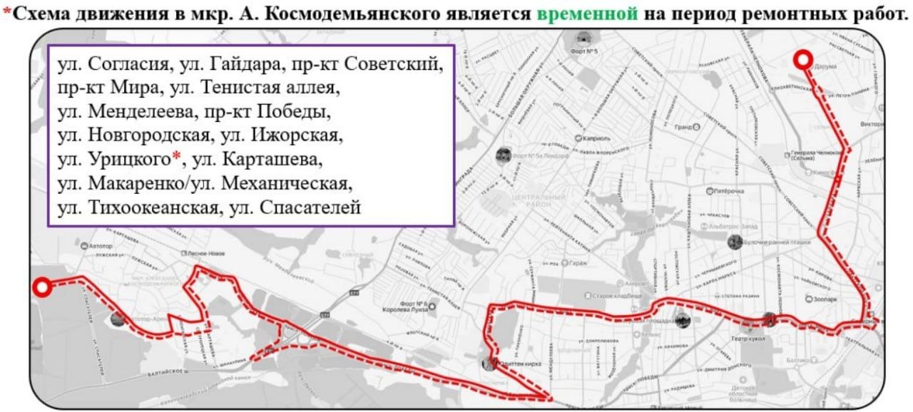 Вместо неё запустят автобус № 22 от Силикатного завода до Дворца спорта "Янтарный". Интервал движения будет от 16 до 18 минут. Остановки смотрите на карте.