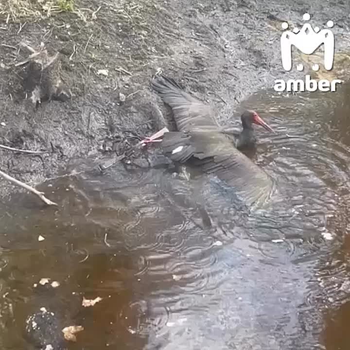 Краснокнижный чёрный аист попал в капкан в Калининградской области. Лапку придётся ампутировать.