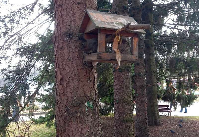В Центральном парке Калининграда белка объедала птиц.