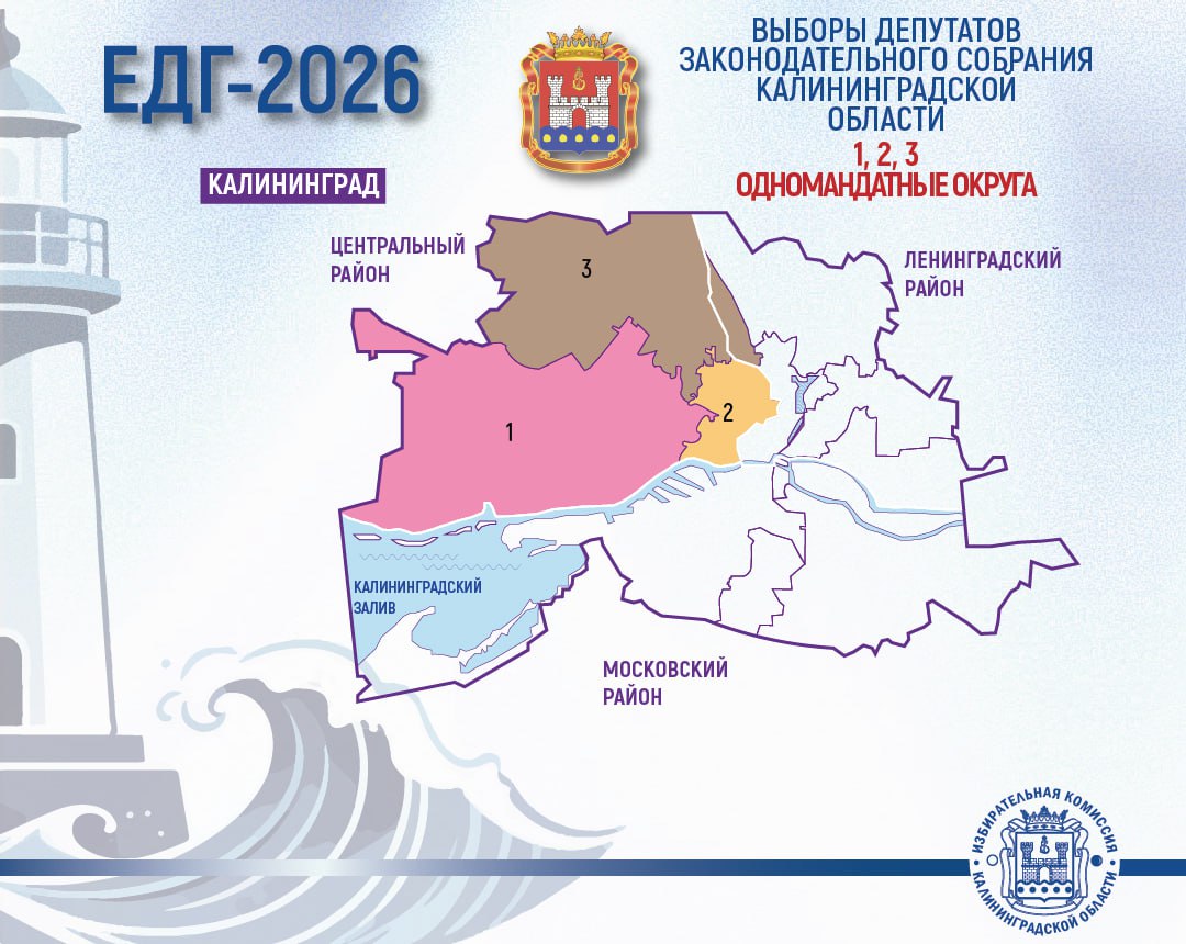 Вниманию избирателей и других участников избирательного процесса Центрального и северо-западной части Ленинградского районов Калининграда!О выборах депутатов Законодательного Собрания Калининградской области в ЕДГ-2026.