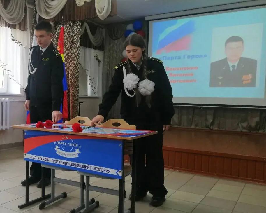 «Особый глубокий смысл этому событию придаёт то, что парта Героя установлена в классе, где учится его дочь»,