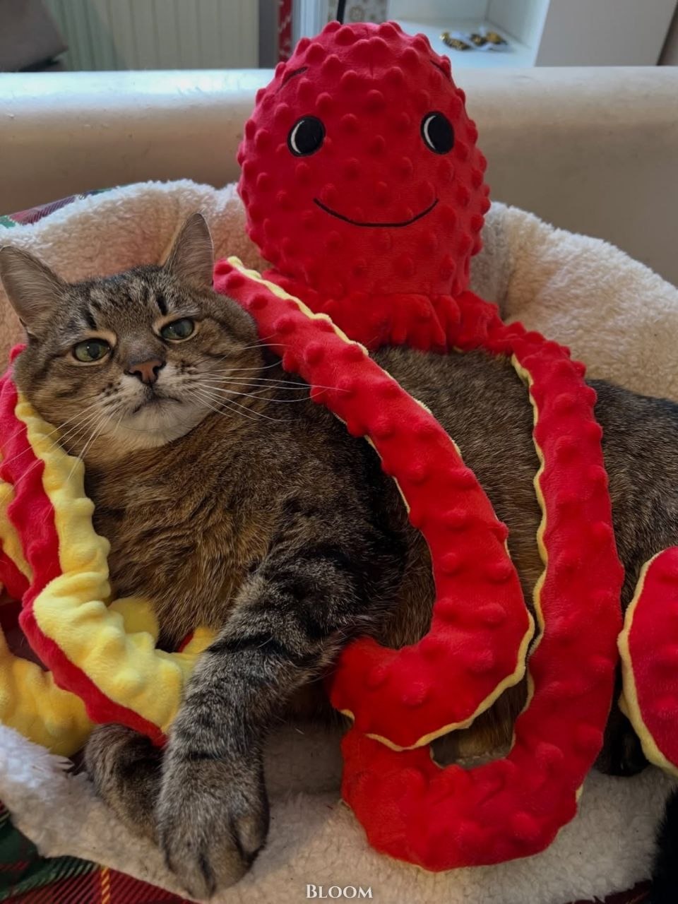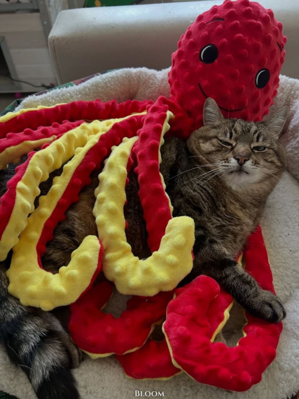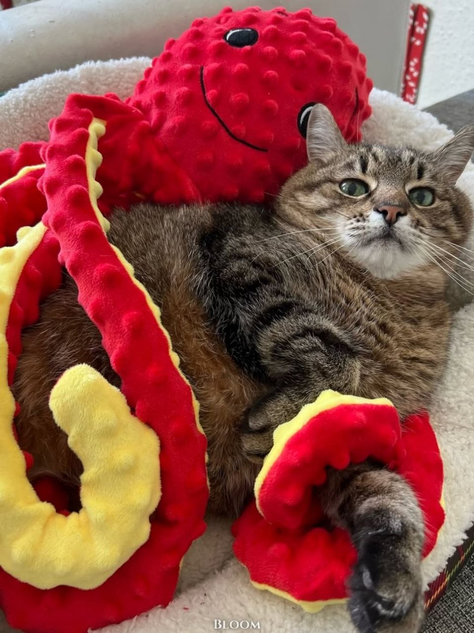 Осьминог удерживает кота в объятиях