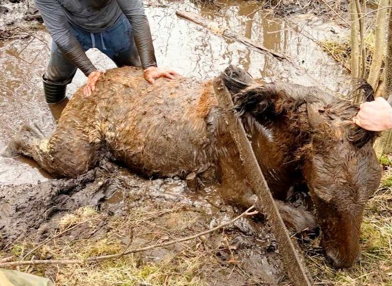 В Калининградской области в конце марта 2026 года поисковики повторили подвиг барона Мюнхгаузена: почти невероятным образом достали лошадь из болота.