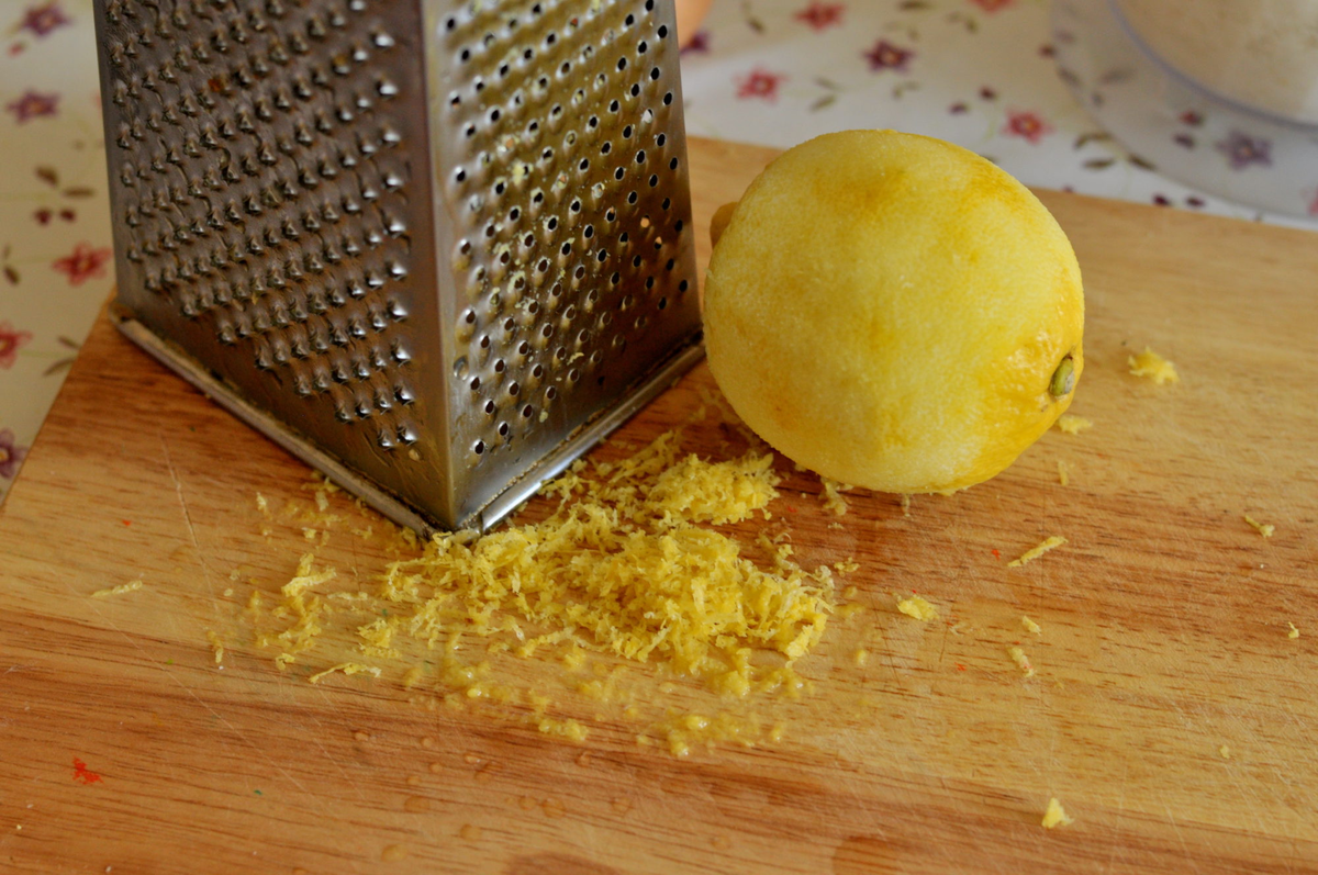 Начните с того, что возьмите ёмкость среднего размера. Всыпьте в неё пищевую соду и лимонную кислоту. Затем натрите на мелкой терке цедру лимона и добавьте её в смесь.