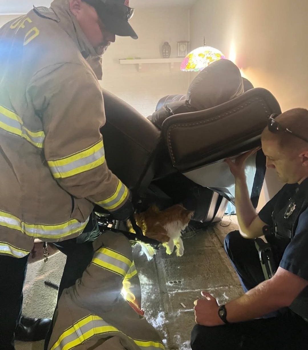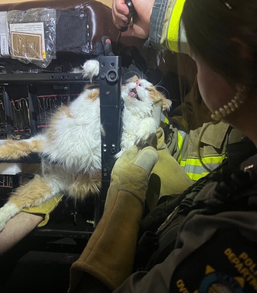 Спасателем пришлось кота, который спрятался в машине под сиденьем и застрял.