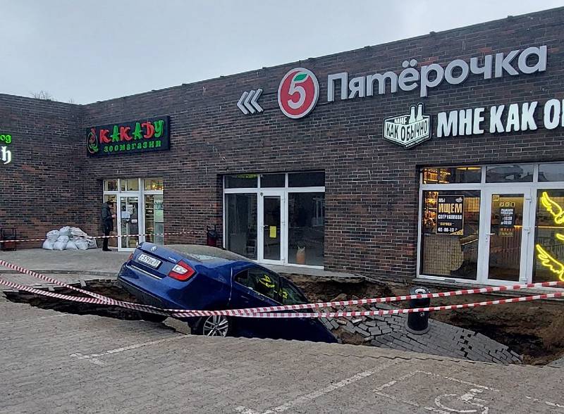 «Это ИИ?»: у «Пятёрочки» в Балтийске под машиной разверзлась парковка