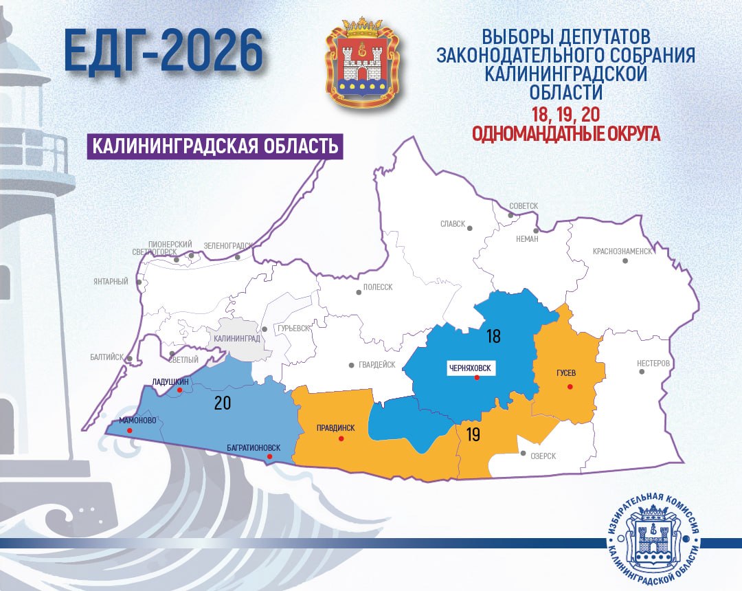 Вниманию избирателей и других участников избирательного процесса Багратионовского, Гусевского, Гурьевского, Ладушкинского, Мамоновского, Озерского, Правдинского, Черняховского муниципалитетов! О выборах депутатов Законодательного Собрания Калининградской области в ЕДГ-2026.