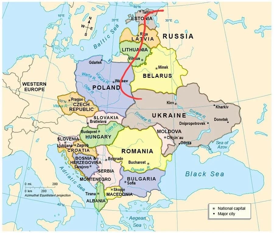 Маршрут1: через Польшу, Литву, Латвию, Эстонию. Минуя нашу Калининградскую область. (Как на картинке)