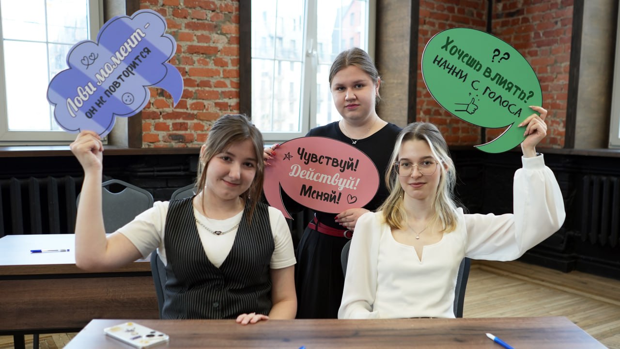 В арт-пространстве «Дом молодежи» собрались студенты БФУ им. И. Канта и волонтеры Движения первых. Им предстояло ответить на вопросы диктанта (подготовленные молодежной комиссией) по избирательному законодательству и правовой культуре.