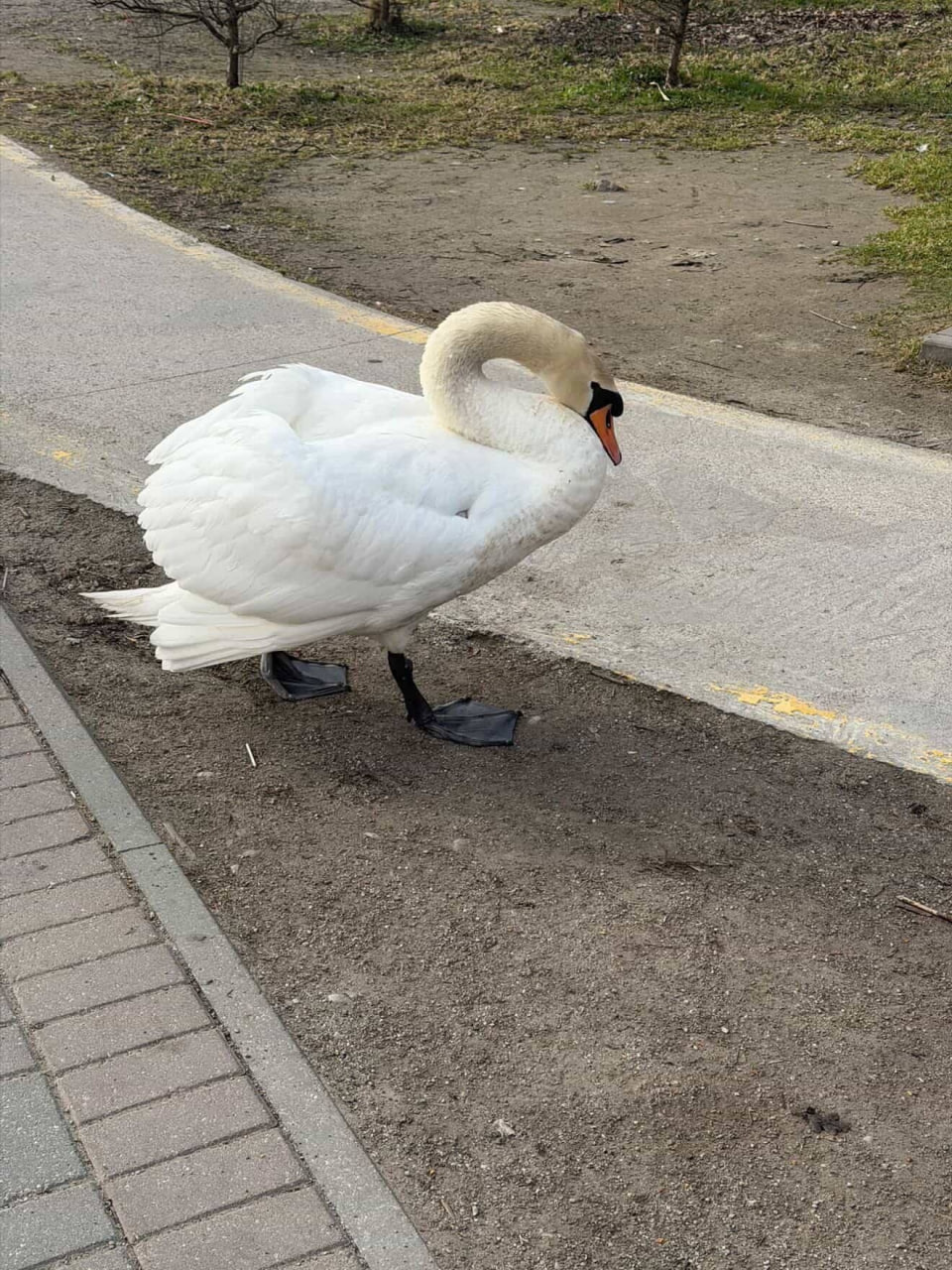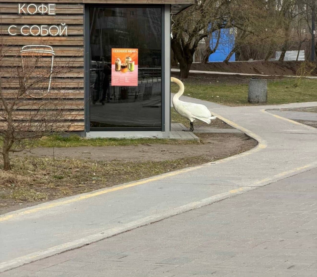 Утром возле Летнего озера прохожие обратили внимание на лебедя-кофемана