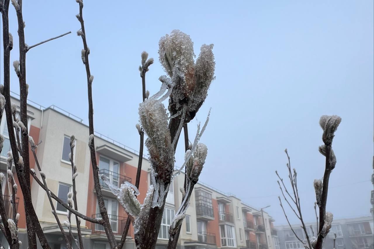 А по утрам в Калининградской области всё ещё морозно. Только посмотрите на вербу в ледяном убранстве!