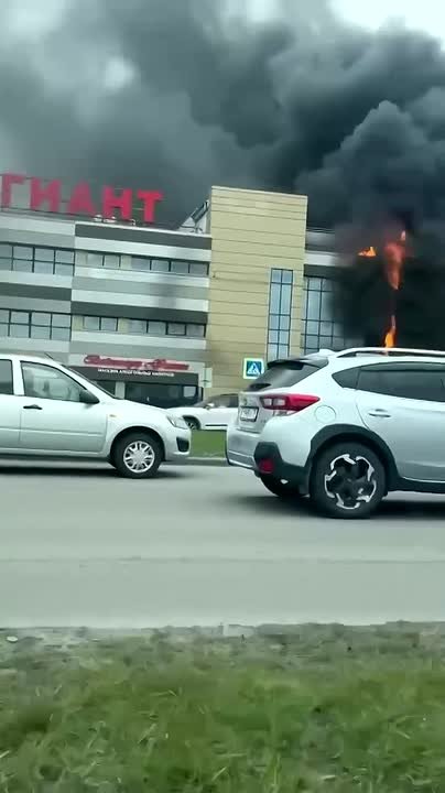 Мощный пожар бушует в Калининграде — горит торговый центр «Гиант».