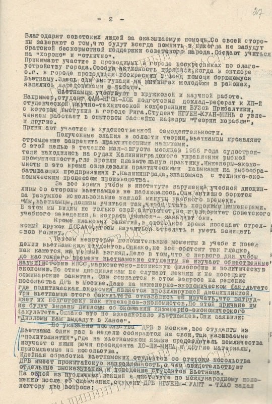 Но был и конфликтный момент. Студенты из Вьетнама отказались посещать занятия по истории КПСС, философии и политэкономии, объясняя это указанием своего посольства. Даже трое студентов инженерно-экономического факультета не захотели изучать профильную для них политэкономию, заявив, что дипломы им выдадут в Ханое.