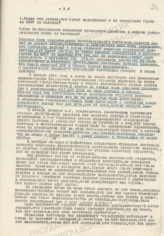 На этом фоне советские власти видели в их позиции не только учебный спор, но и следствие более широкого конфликта между СССР и Китаем. В документах тех лет отмечалось, что часть вьетнамских студентов симпатизировала Пекину и ориентировалась на китайскую линию.