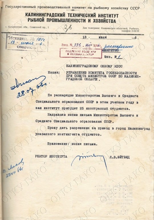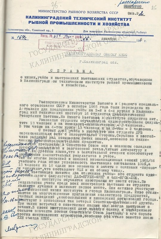 В 1966 году в закрытую для иностранцев Калининградскую область разрешили въезд 25 зарубежным студентам. Большинство из них — 16 человек — были из Демократической Республики Вьетнам и продолжили учёбу в КТИРПиХ.
