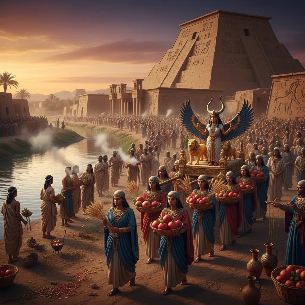 Фестиваль Осириса (~конец марта–апрель, во время разлива Нила). Миф о смерти и воскрешении Осириса, связанный с плодородием почвы и урожаем.