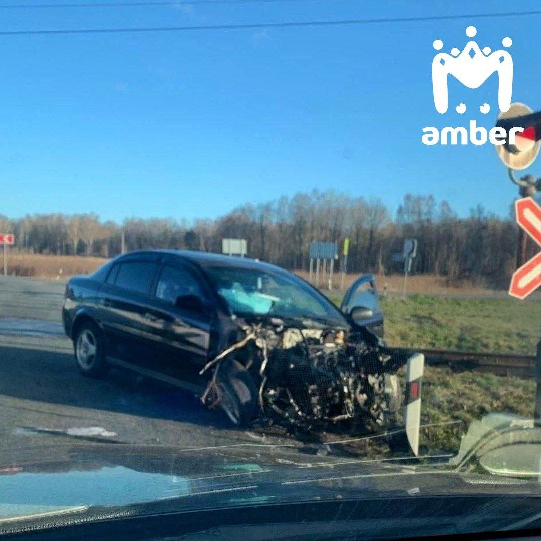 Водитель забил на красный и выехал на рельсы. Машина в тотал, чудом никто не пострадал.