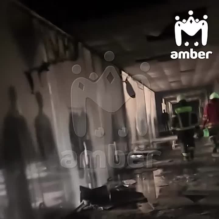 Мутные витрины, одинокие магазины и штукатурка на полу — так выглядит ТЦ "Гиант" после пожара изнутри.