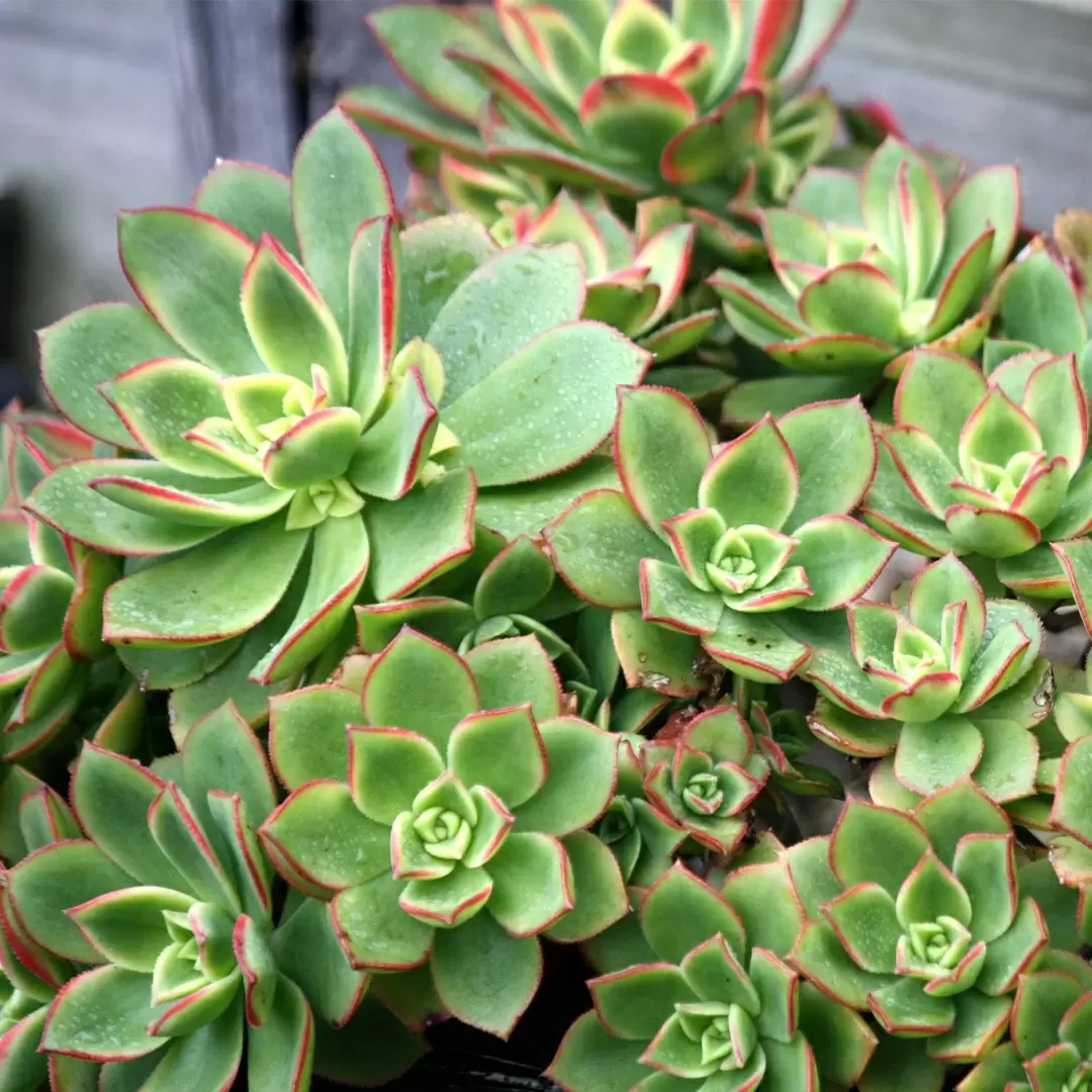 - Эониум Хаворта 'Киви' (Aeonium haworthii 'Kiwi'): компактное растение с ярко-розовой каймой по краям листьев, высотой до 60 см, станет настоящим украшением любого стола.