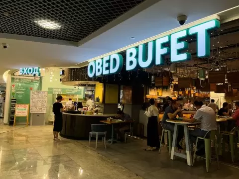 Интерьер «Обед Буфет» остается ярким и запоминающимся: композиции с едой аккуратно размещены вдоль линий раздачи от «Салат Бара» до душистой выпечки. Однако во время обеденного времени места быстро заполняются, и в зале начинается легкая неразбериха из-за местной загруженности.