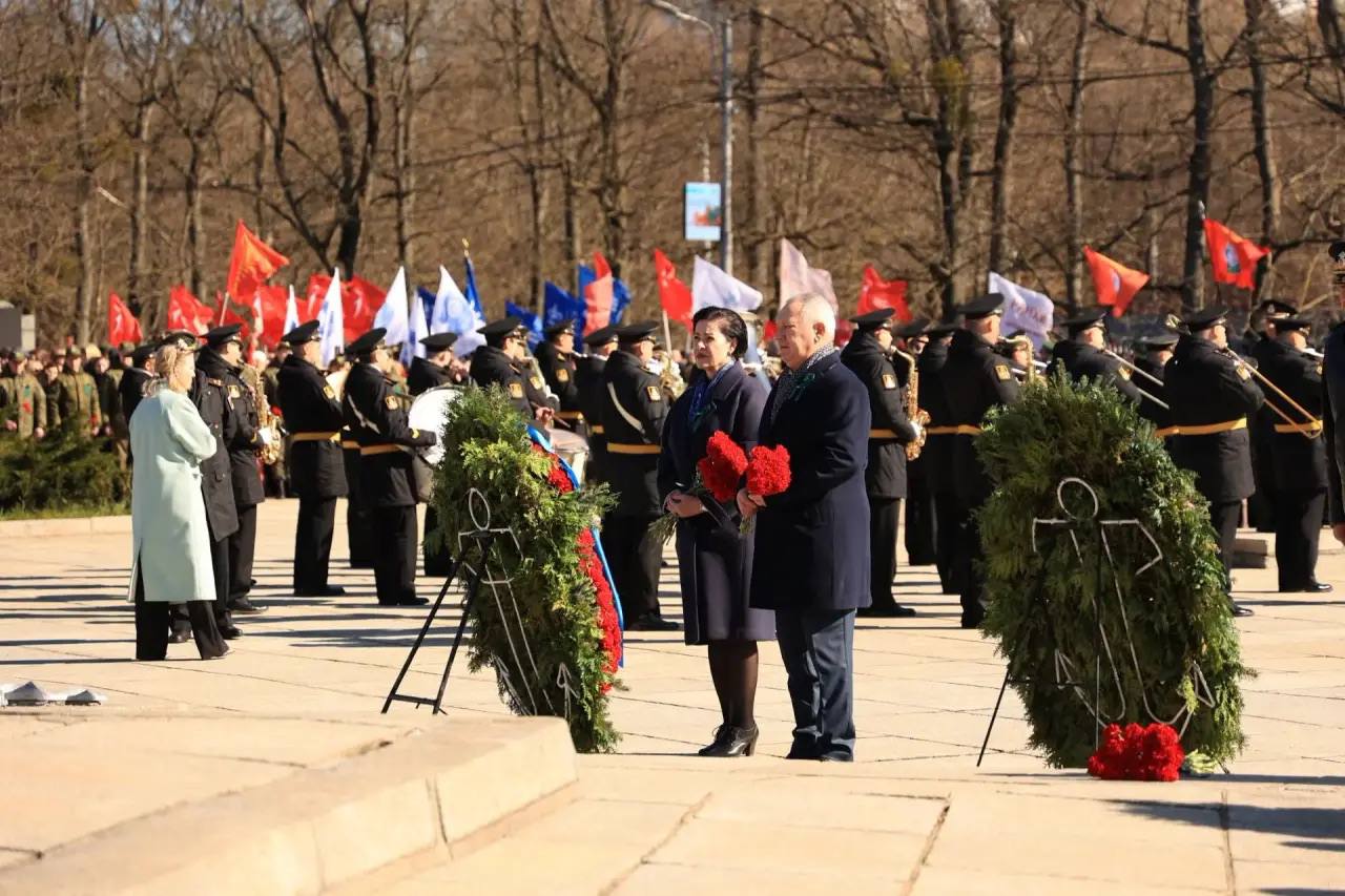 Сегодня, в этот знаменательный день, 81-ю годовщину победоносного штурма Кёнигсберга, вместе с тысячами калининградцев, пришедших на памятную церемонию, возложили венки и цветы к мемориалу 1200 воинамгвардейцам — величественному памятнику, увековечившему подвиг солдат 11й гвардейской армии.
