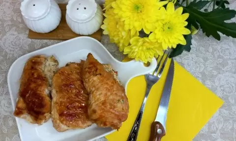 Смесь размещают на маринованных стейках равномерным слоем, после чего аккуратно сворачивают их в рулетики, придавая нужную форму. Затем нужно разогреть сковороду с небольшим количеством масла и обжарить рулетики на среднем огне до получения румяной корочки. Эта простая, но вкусная закуска идеально подойдет для семейного ужина или торжественного мероприятия.