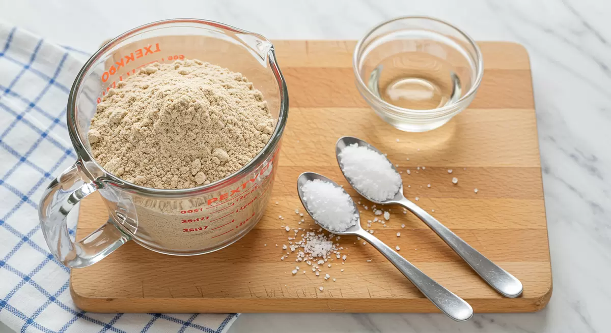 - Ржаная мука (300 г) – основа вкуса и питательности.