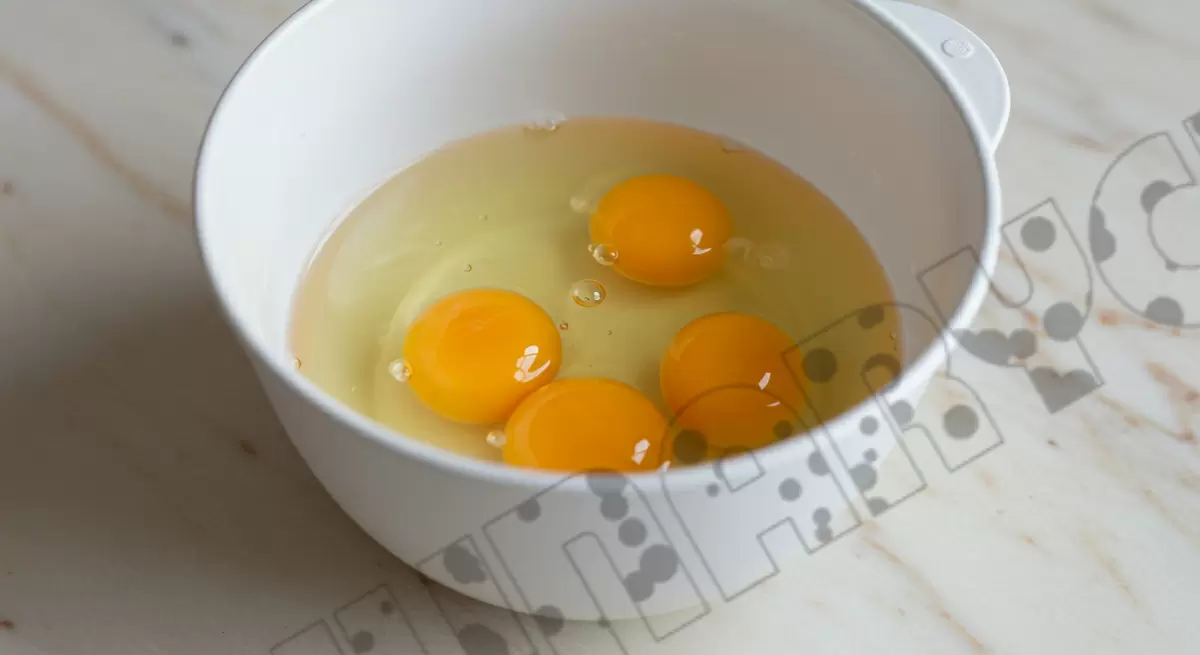 Начните с яйца: аккуратно отделите их в чистую и сухую посуду, ведь залог успеха бисквита зависит от того, насколько хорошо они будут взбиты. Разогрейте духовку до 180°C заранее — это даст тесту все необходимое для быстрого подъема.