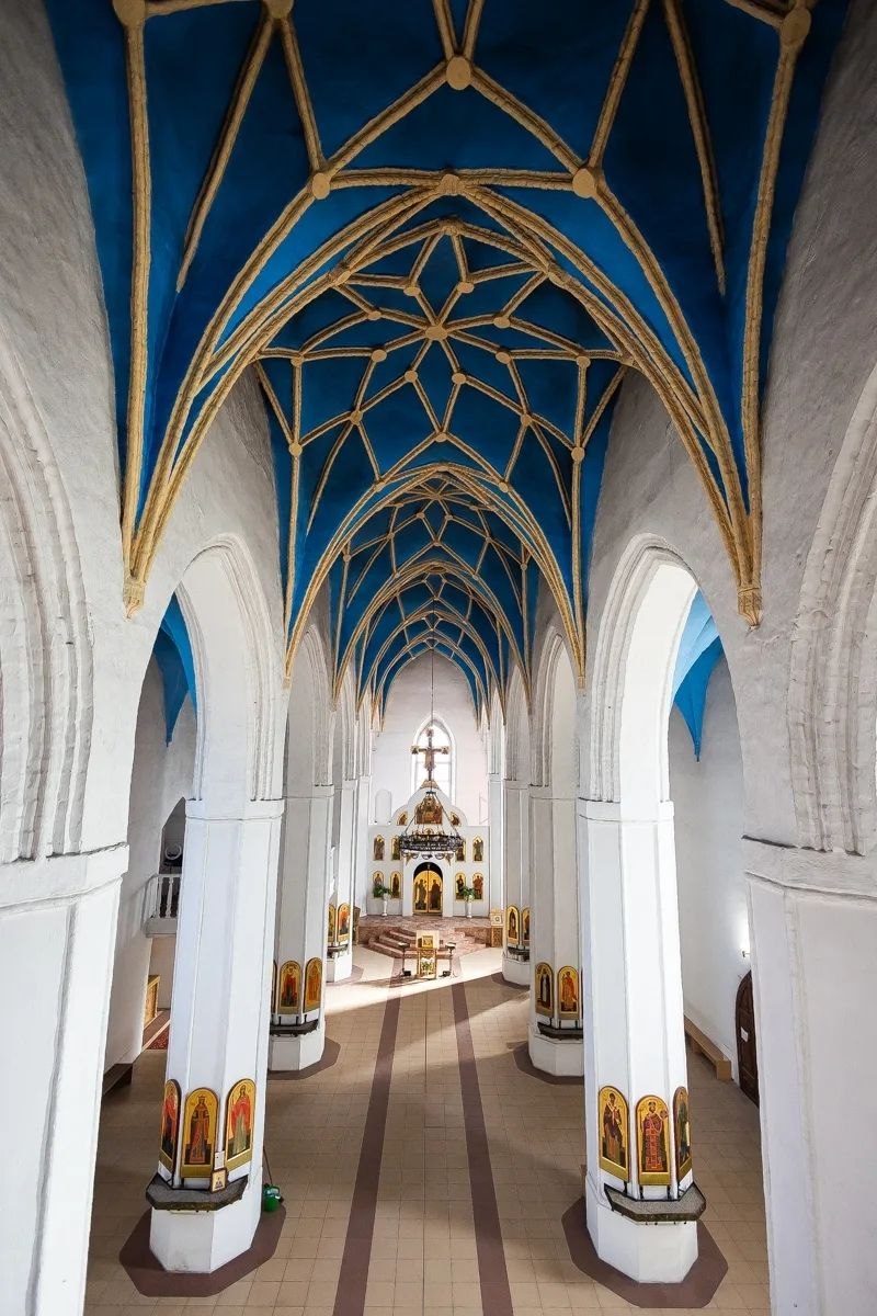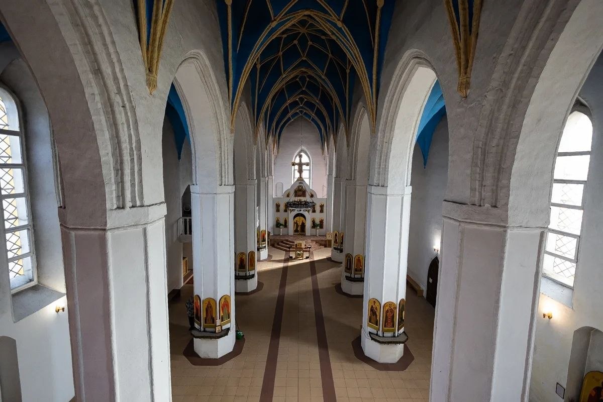 Первоначально заложена как католическая кирха в 1313 году, затем перестроена в камне в 14 веке.