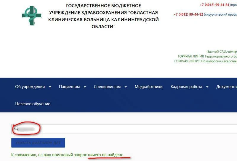 «Русский Запад» попытался найти Ларису Ивановну на сайте областной больницы. Ответ: «Ничего не найдено».