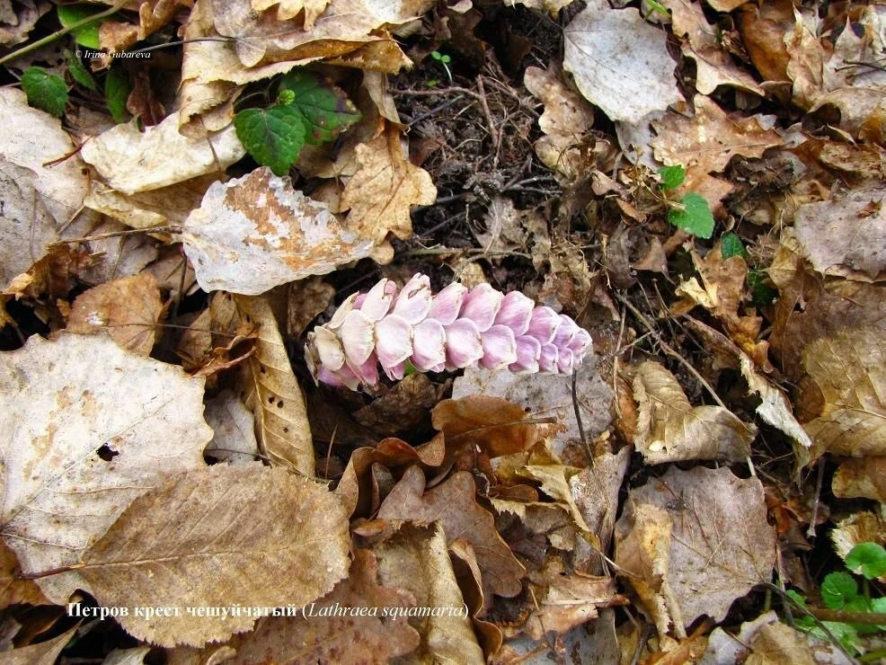 Это Петров крест чешуйчатый. У него нет зеленого стебля и листьев. Молодые розоватые цветоносы выглядят сгорбленными, а прицветники, расположенные в ряд, напоминают зубы, из-под которых выглядывают волосистые чашелистики цветков. О том, что такое растение можно встретить только весной, сообщает пресс-служба нацпарка со ссылкой на биолога Ирину Губареву.