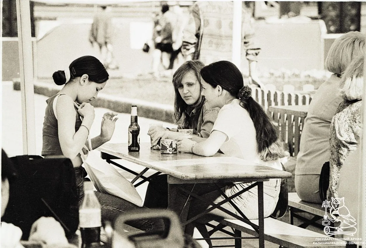 В середине 1990-х и начале 2000-х на улицах было много простых летних кафе: маленькие павильоны, пластиковые столики и стулья, а над ними — зонты с логотипами пива.