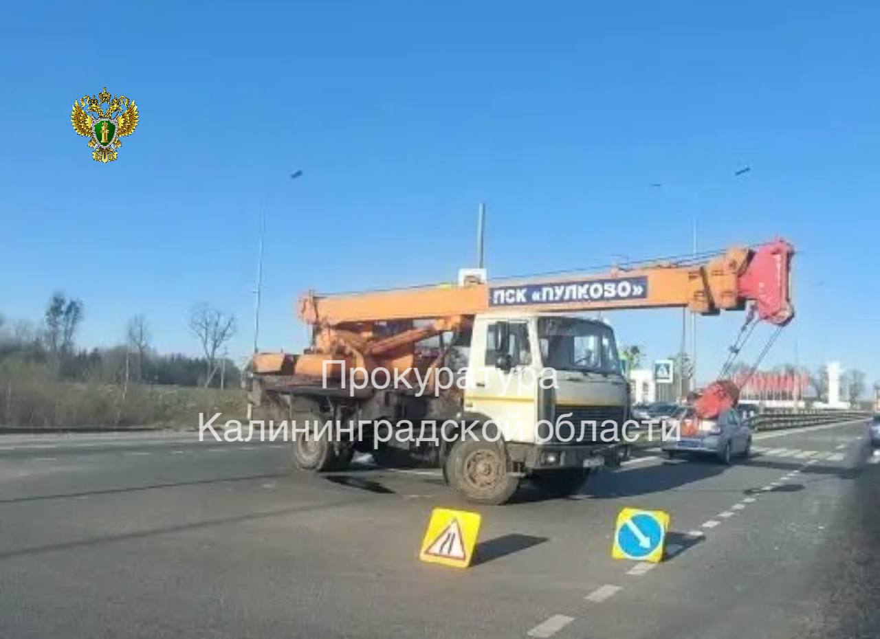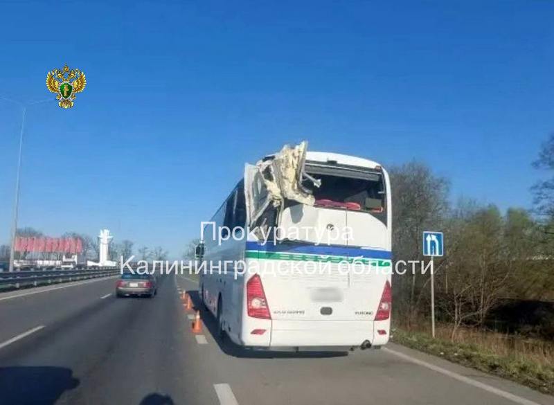 На федеральной трассе А-229 в четверг, 16 апреля 2026 года, в рейсовый автобус, ехавший из Калининграда в Гусев, в районе поворота на посёлок Прибрежное Гурьевского района врезался автокран .