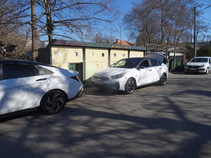 Первым был Зеленоградск, где шкафы для раздельного сбора стали устанавливать с 2021 года . В 2025 году там на строительство контейнерных площадок было выделено 11 млн рублей . На фотографии — одна из таких площадок в Зеленоградске, поставленная не вчера, в жилом районе города .