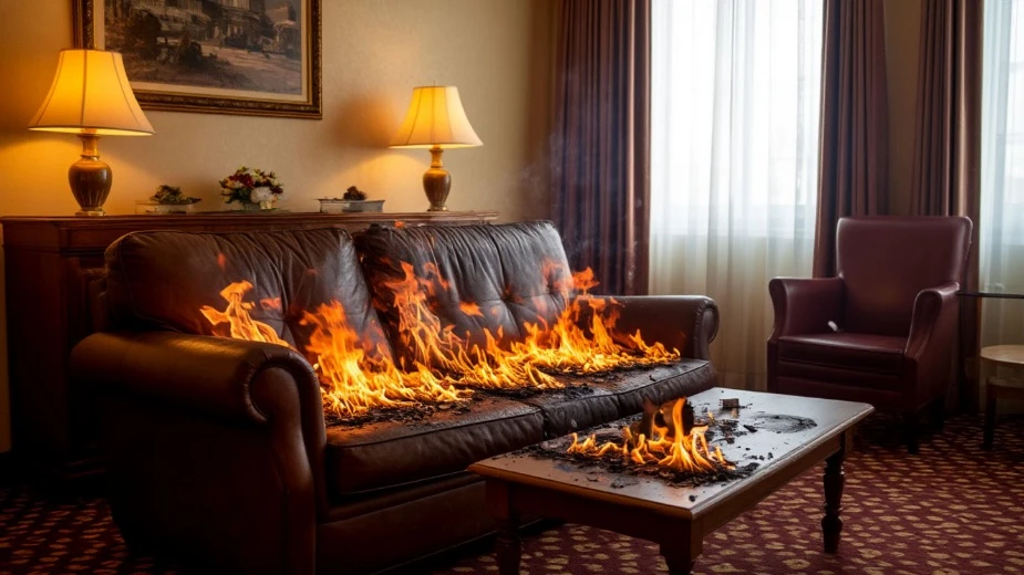 Всё произошло вечером в воскресенье, 19 апреля. Как рассказали в главном управлении МЧС по Калининградской области, в отеле «Старый доктор» горел диван в комнате обслуживающего персонала. Стены и потолок были закопчены.