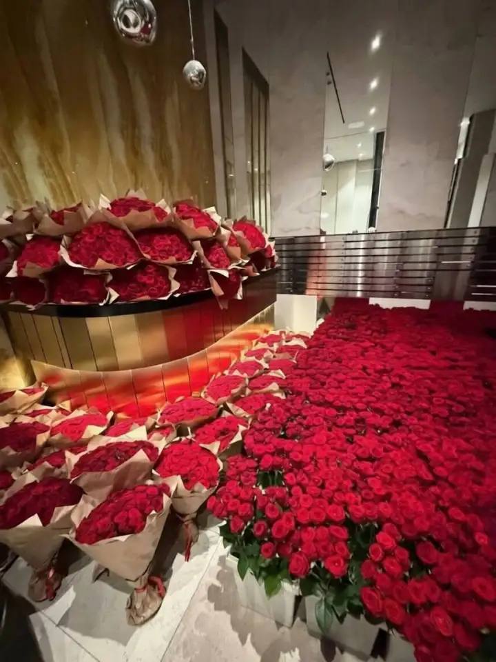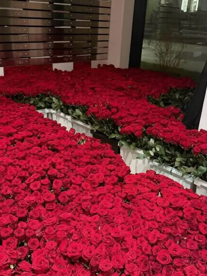 В одном из жилых комплексов Москвы мужчина устроил по-настоящему роскошный сюрприз для любимой — привёз ей два десятка тысяч роз. Подъезд буквально заполнили цветами.